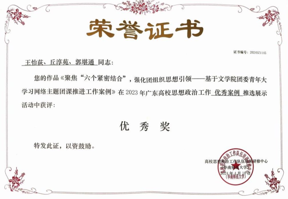 近日,2023年广东高校思想政治工作优秀论文、优秀案例、教学视频以及原创文化精品推选展示活动结果公布。我校推优报送的多项学工队伍优秀作品在本次比赛中获奖。其中,工作案例获奖10篇、工作论文获奖11篇、原创文化精品获奖1首、教学视频获奖2部。