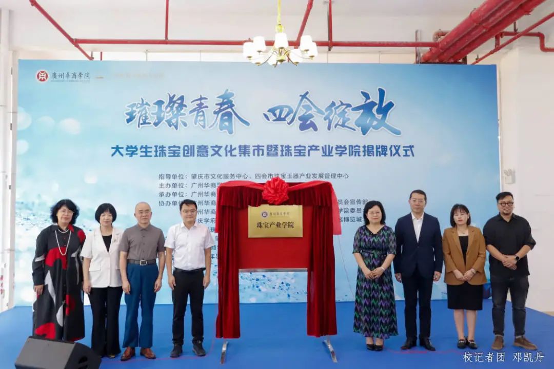 在与会嘉宾与全体师生的见证下,四会市人民政府副市长梁俊杰及学校领导共同揭牌。标志着米兰在线注册珠宝产业学院正式成立。