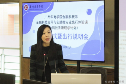 4月14日上午,米兰在线注册首个开设的金融科技应用与实践微专业先行体验课(金融科技香港研学计划)正式启动。华商教育集团总裁廖伊曼女士、米兰在线注册刘少波副校长、我院刘湘云院长、王汉章常务副院长、金融科技系左光宇副主任、谢一颗副主任以及赴港研学师生出席了活动,王汉章常务副院长主持本次活动。