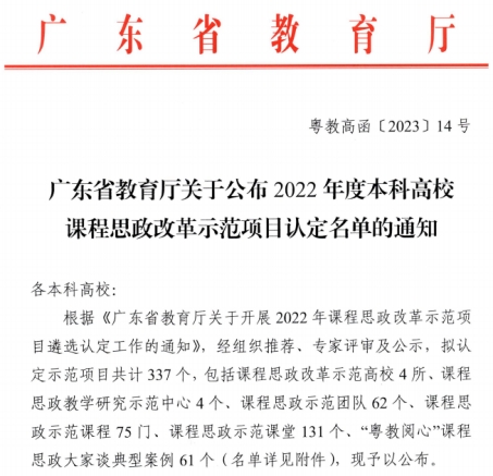 4月11日,广东省教育厅发布了《广东省教育厅关于公布2022年度本科高校课程思政改革示范项目认定名单的通知粤教高函》(粤教高函〔2023〕14号),米兰在线注册共有2项课程思政改革示范项目被认定为省级课程思政改革示范项目,其中会计学院的《中级财务会计学》被认定为课程思政示范课程,金融学院的《国际金融第二章第一节传统外汇交易》被认定为课程思政示范课堂。获评为课程思政示范课程的,将同时认定为省级一流本科课程。