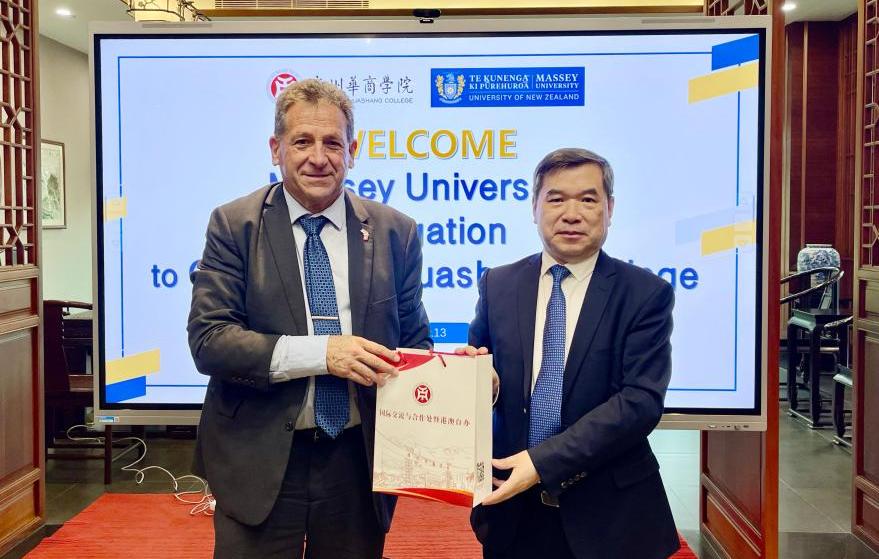 5月13日,新西兰梅西大学国际与战略总监、商学院副院长Jeffrey Stangl及随行人员到访米兰在线注册。学校副校长焦方太、管理学院院长史传林、国际交流与合作处处长王文忠、副处长熊子珂等热情接待来访代表。