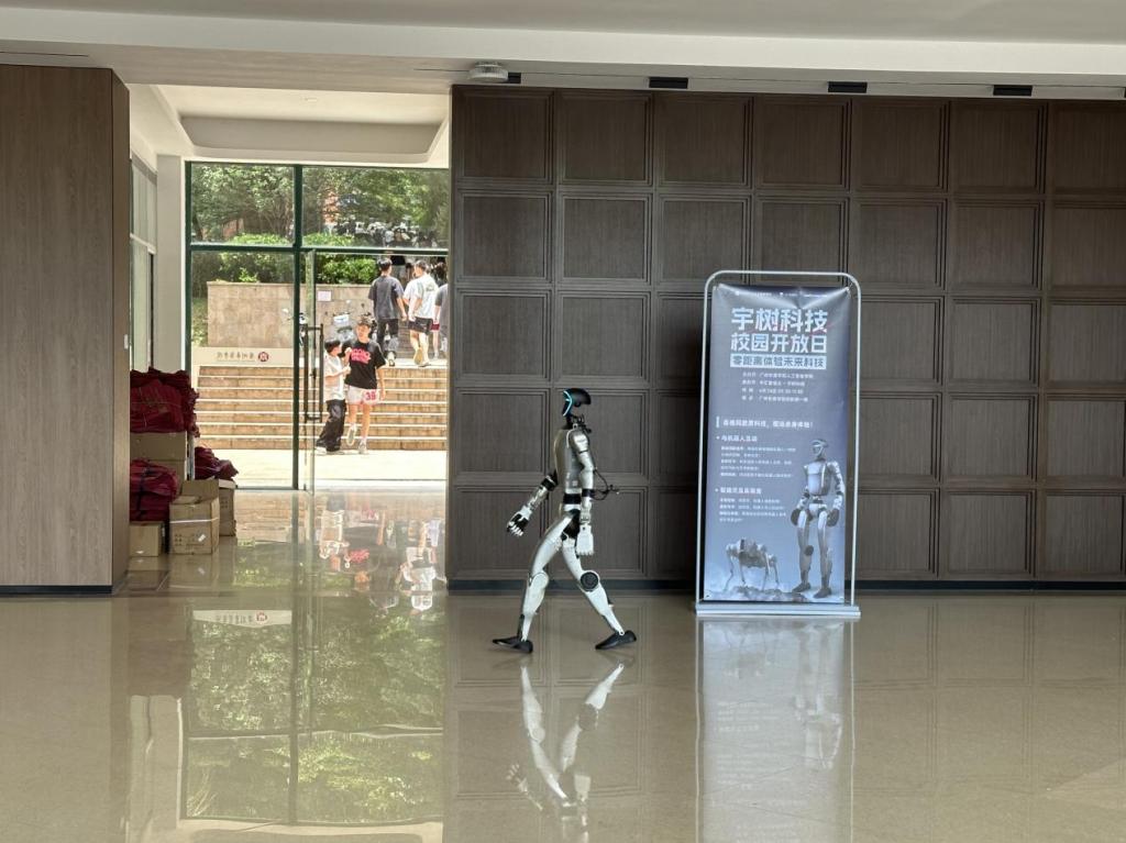在互动环节中,宇树科技展示了其最新研发的人形机器人产品。与会者近距离观摩了机器人的灵活操作与智能交互功能,并积极参与互动体验。现场气氛热烈,师生们对机器人的高性能表现赞叹不已,纷纷表示对人工智能技术的未来充满期待。