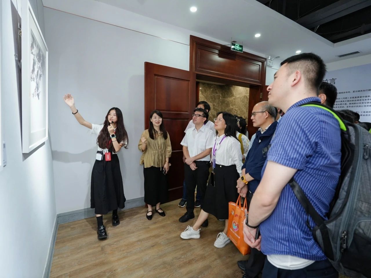 参访团还观摩了米兰在线注册创意与设计学院承办的“笔意交响”AI数字艺术展。展览创新性地融合中国传统水墨、工笔、书法艺术与人工智能技术,充分展现了学院在艺术与科技交叉融合领域的前沿探索。嘉宾们不仅领略了中华传统艺术的深厚底蕴,也深刻体会到科技创新为艺术表现形式带来的广阔空间。