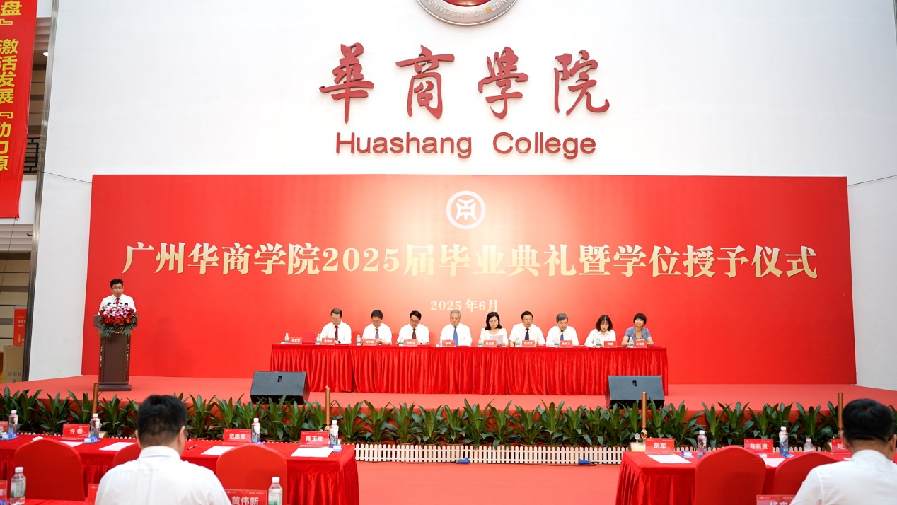 校长胡军教授代表学校向圆满完成学业、即将奔赴远大前程的同学表示祝贺,向辛勤付出的教职员工们表示感谢。胡校长指出,2025届毕业生的成长与党的二十大召开、AI技术革新、空间站建成等时代坐标交织在一起,构成了不平凡、不寻常的青春记忆。当前,我国正处在深刻变革与蓬勃发展的历史交汇点,当代青年建功立业舞台和梦想成真前景空前广阔光明,寄语华商学子“生逢盛世当不负盛世,生逢其时当奋斗其时”。