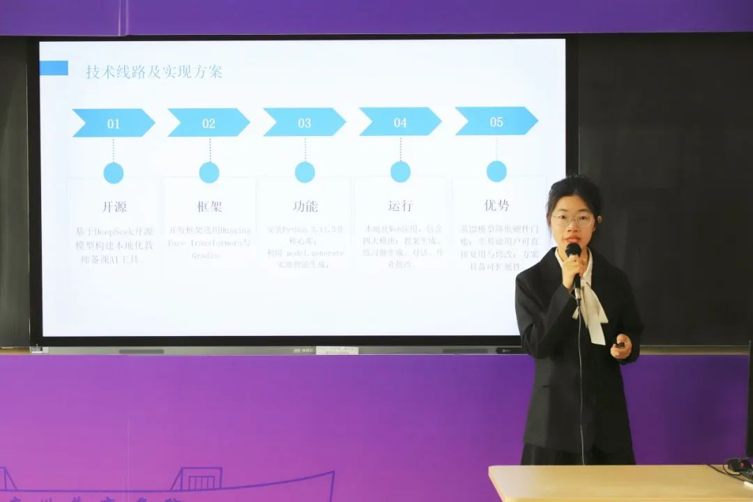 参赛项目覆盖领域广泛,涵盖新能源、新材料、人工智能、文化创意、电子商务等多个前沿领域,充分展现出同学们对社会热点问题的敏锐洞察,以及运用专业知识解决实际问题的能力。各参赛团队分别从项目介绍、问题分析与解决方案、创意描述、产品技术等方面进行展示。