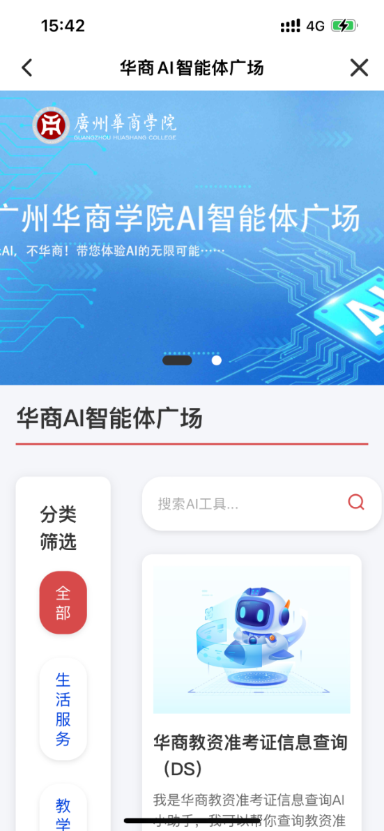 3.选择“华小AI”功能,进入【华商AI智能体广场】。