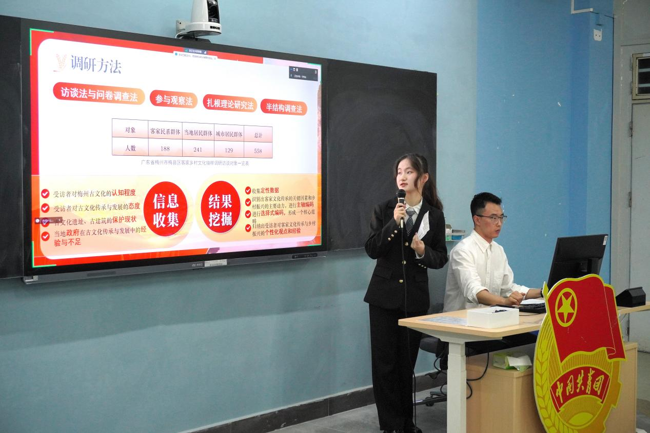 答辩会现场,12支参赛团队通过PPT展示项目成果,围绕项目的创新性、可行性和社会价值进行阐述。项目涉及科技创新、社会治理、生态环保、传承发展多个领域。评委们对项目进行现场质询和点评,肯定项目亮点,同时指出存在的问题,并给出针对性的改进建议。评委们的专业指导与建议,为参赛团队拓宽了思路,为项目优化提供更新颖的视角和更清晰的方向。
