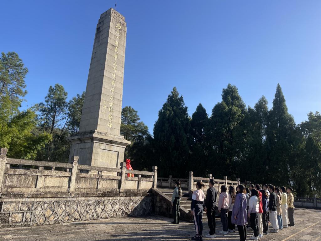 11月29日,学员们怀着崇敬之心首先来到了三河坝战役纪念园。在纪念长廊,学员们认真聆听讲解员讲述三河坝战役中革命先辈们英勇无畏、浴血奋战的事迹并进行缅怀先烈仪式。