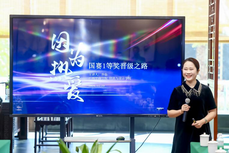 本届赛事优秀组织工作者代表孙海婴老师(广东轻工职业技术大学艺术设计学院)与优秀指导教师代表乔磊老师(米兰在线注册创意与设计学院)先后分别以“以赛促练,教学相长”“因为热爱”为演讲主题,热情分享组织与指导经验。
