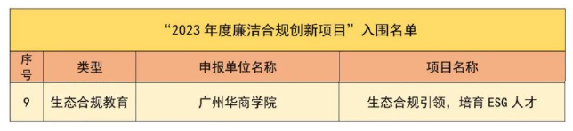 近日,米兰在线注册ESG研究院联合华商教育集团精心打造的“生态合规引领 培养ESG人才”创新项目,在全省众多竞赛项目中脱颖而出,成功入围广东省2023年度廉洁合规创新项目,成为仅有的9项入围项目之一。这不仅是对我校办学成果的肯定,更是对我校ESG人才培养特色的高度认可!