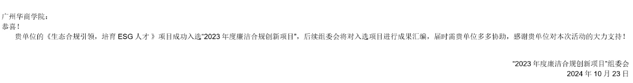 (2023年度廉洁合规创新项目入选通知)