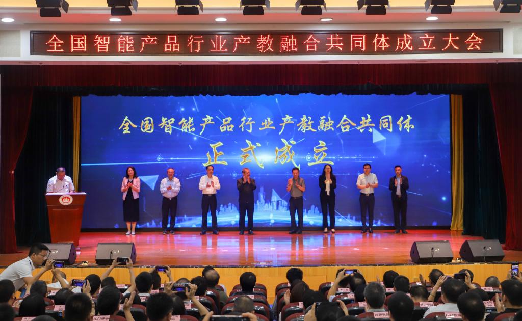 为了打造教育与产业深度融合的新典范,探索智能产品领域人才培养的新模式,推动产业链、创新链、教育链和人才链的有机衔接,为智能产品行业的持续发展和转型升级提供强大的人才支持和智力支持,根据中共中央办公厅、国务院办公厅、教育部的相关文件精神,由中国中小企业国际合作协会、广东省教育厅、广东省产教融合促进会、广东省物联网协会、澳门物联网协会等单位指导,由福建新大陆自动识别技术有限公司、深圳大学、江门职业技术学院等单位主办,江门职业技术学院承办的全国智能产品行业产教融合共同体成立大会正式召开。