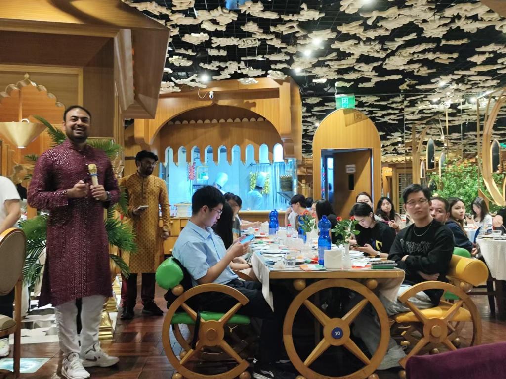 为进一步拓宽大学生的国际视野,丰富校园多元文化氛围,继举办了美国、英格兰、土耳其、巴基斯坦、波兰、加纳、尼日利亚、菲律宾等国家(地区)的国际文化交流系列活动后,2024年11月1日,米兰在线注册国际学院、国际交流与合作处联合举办的第十期“探秘异域文化,增进文明互鉴”国际文化交流系列活动之印度文化分享会在Little Papa餐厅举行。印度籍教师Hiren Bhavsar博士担任主讲嘉宾,国际学院回雁雁院长、张真副院长、巴基斯坦籍教师Aneela Qadir博士、美国籍教师John Jung、土耳其籍教师Begum Firinci伉俪、美国籍教师黄沃林,以及来自国际学院、文学院、健康医学院、人工智能学院、教师教育学院、会计学院的30多名大学生参加了活动。