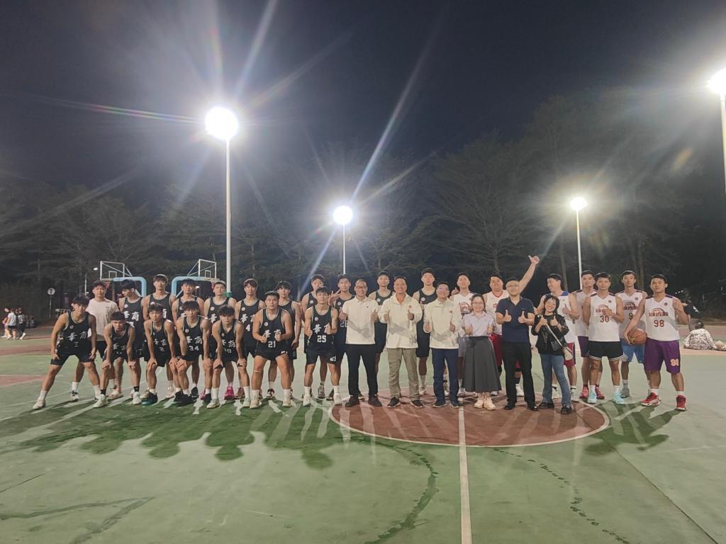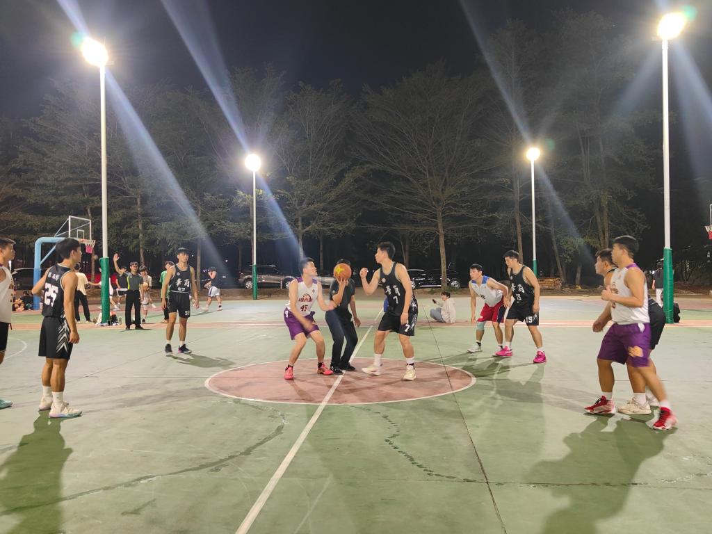 随着夜幕的降临,我校篮球队与增城区总工会机关篮球队在灯光璀璨的篮球场上集结,准备为观众奉献一场精彩绝伦的篮球对决。随着裁判的哨响,比赛正式拉开了序幕,双方球员迅速进入状态,场上瞬间充满了紧张而激烈的气氛。