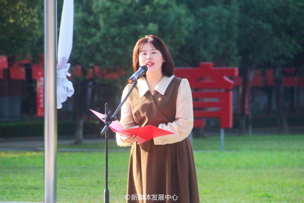 学校副校长许娜讲话。她强调,今天是烈士纪念日,在这庄严肃穆的日子,我们站在国旗下,怀着崇敬与感激之情,举行“国家烈士纪念日”主题升旗仪式,缅怀那些为了国家独立、民族解放和人民幸福而英勇献身的烈士们。在中国共产党的正确领导下,全国各族人民创造了经济快速发展和社会长期稳定两大奇迹,伟大祖国发生了翻天覆地的变化,中华民族伟大复兴进入了不可逆转的历史进程。当前,我国正处于以中国式现代化全面推进强国建设、民族复兴伟业的关键时期。她鼓励华商青年:第一,以青春之我,厚植爱国情怀。新时代华商青年要自觉做党的创新理论的笃信笃行者,自觉以党的创新理论武装头脑。第二,以梦想之我,树立强国之志。要忠心爱国、矢志报国,在强国路上挥洒汗水,留下华商青年坚实的足迹。第三,以奋斗之我,实践报国之行。要把握时代际遇,在实践中顽强拼搏、求真学问、练真本领,以优异的成绩迎接二十周年校庆,以坚定的信心迎接本科教学合格评估工作,服务社会、建设国家,献礼新中国75周年华诞!