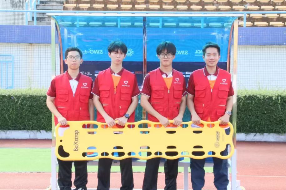 在这紧张激烈的比赛背后,有一群华商青年志愿者,在各个角落,默默奉献;有的志愿者负责物资管理,确保比赛所需器材、设备及时到位;有的志愿者担任医疗急救,随时为受伤的运动员提供紧急援助;有的志愿者负责信息传递与协调,确保赛场内外信息畅通无阻。