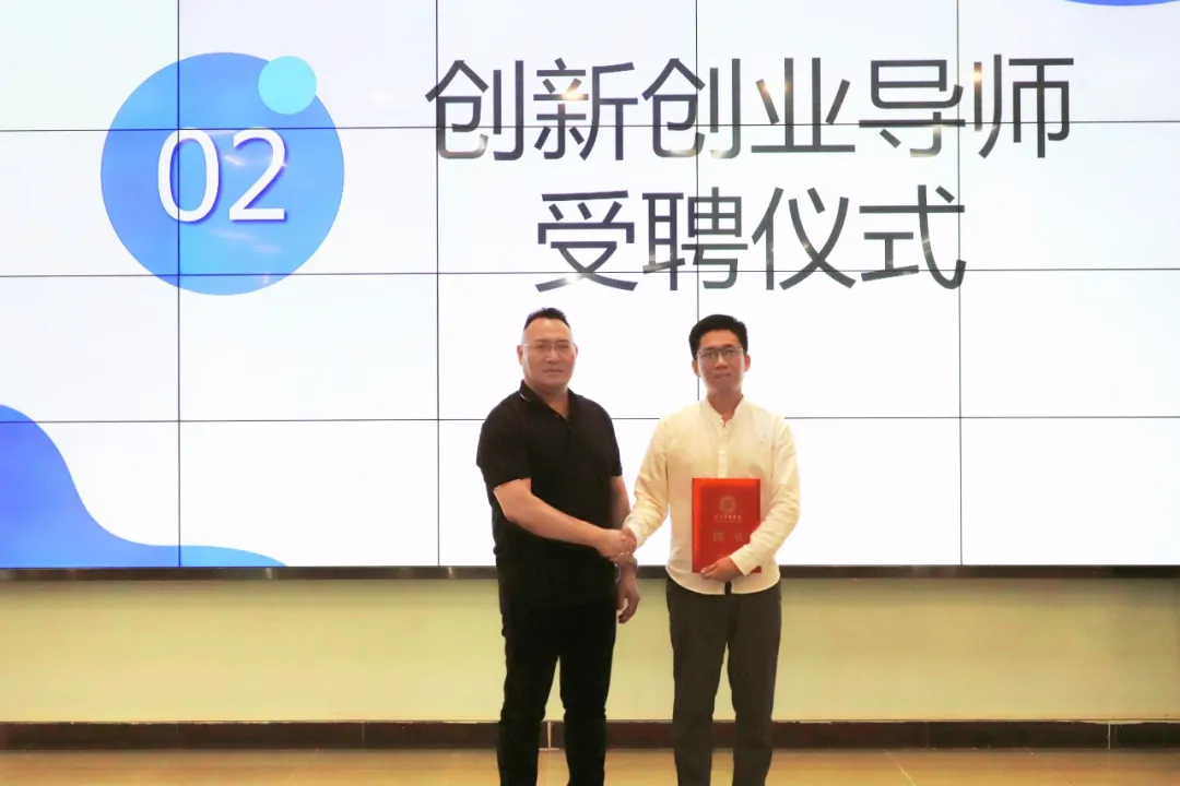 米兰在线注册学生就业创业处曾龙威处长为柯世明先生颁发聘书,柯世明先生受聘为米兰在线注册创新创业导师。