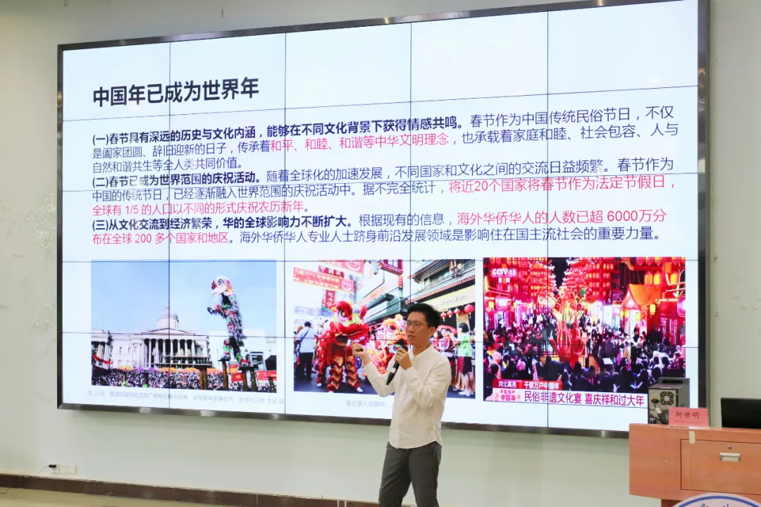 随后,柯世明先生深入剖析了中国文化在全球文化格局中的地位和挑战,并指出中国文化不仅在历史连续性方面表现出色,在思维模式和表达方式上也具有独特的优势。他为同学们解读了中国文化影响力的提升、当前文化行业的机遇与挑战和文化与乡村发展之间的紧密联系,并提出顺势而为、从细节发掘创业机会的策略,鼓励同学们积极开展文化创新,为同学们如何在文化行业中找到发展机遇指明方向。