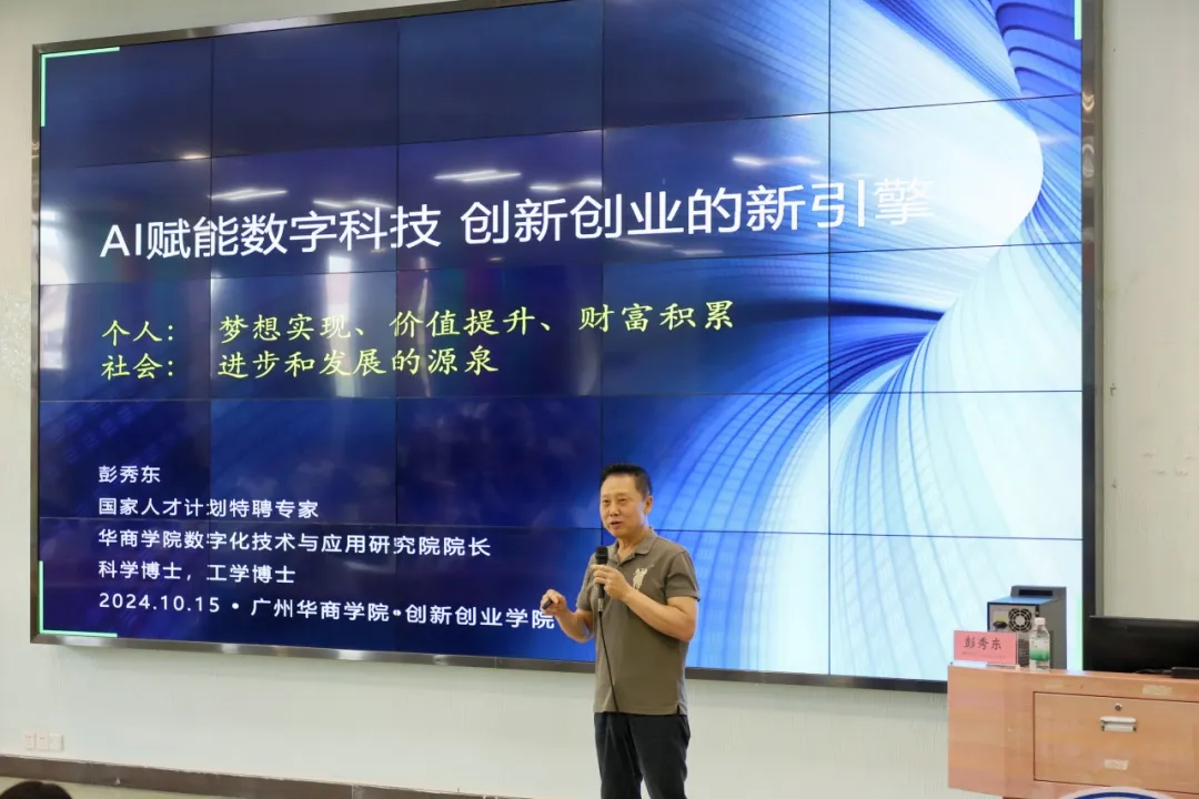 10月15日下午,由米兰在线注册就业创业e站主办,米兰在线注册学生就业创业处、米兰在线注册创新创业学院、华商众创孵化基地承办,米兰在线注册大学生创业协会协办的《AI赋能数字科技,创新创业的新引擎》专题讲座在广州校区励志楼C408(主会场)、肇庆校区6号楼201(分会场)同步举行。