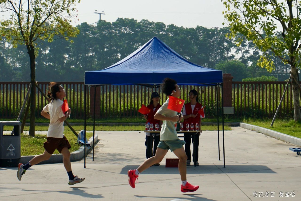 有一种浪漫,叫“我与国旗合张影”。本次活动在明星饭堂前特别设置“我和国旗同框”合照打卡点。参跑师生排起长队,纷纷与国旗合影,为祖国送去最诚挚的祝福。