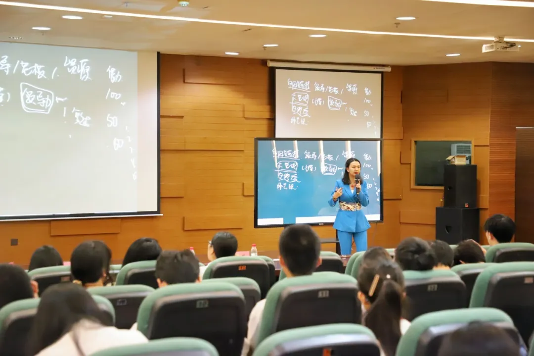 陈佩玲女士以自身经历为例,向同学们呈现了一个女性创业者的生动形象。她指出,应当从成功的创业者身上汲取经验,学习他们的创业精神和经营智慧。同时,结合自身的实际情况,将这些经验应用创业实践中。她强调,创业并非易事,需要有坚定的信念和不懈的努力,才可能闯出一片属于自己的天地;创业也并非适合每一个人,每个人都需要根据自己的性格、能力和兴趣来选择适合自己的道路。