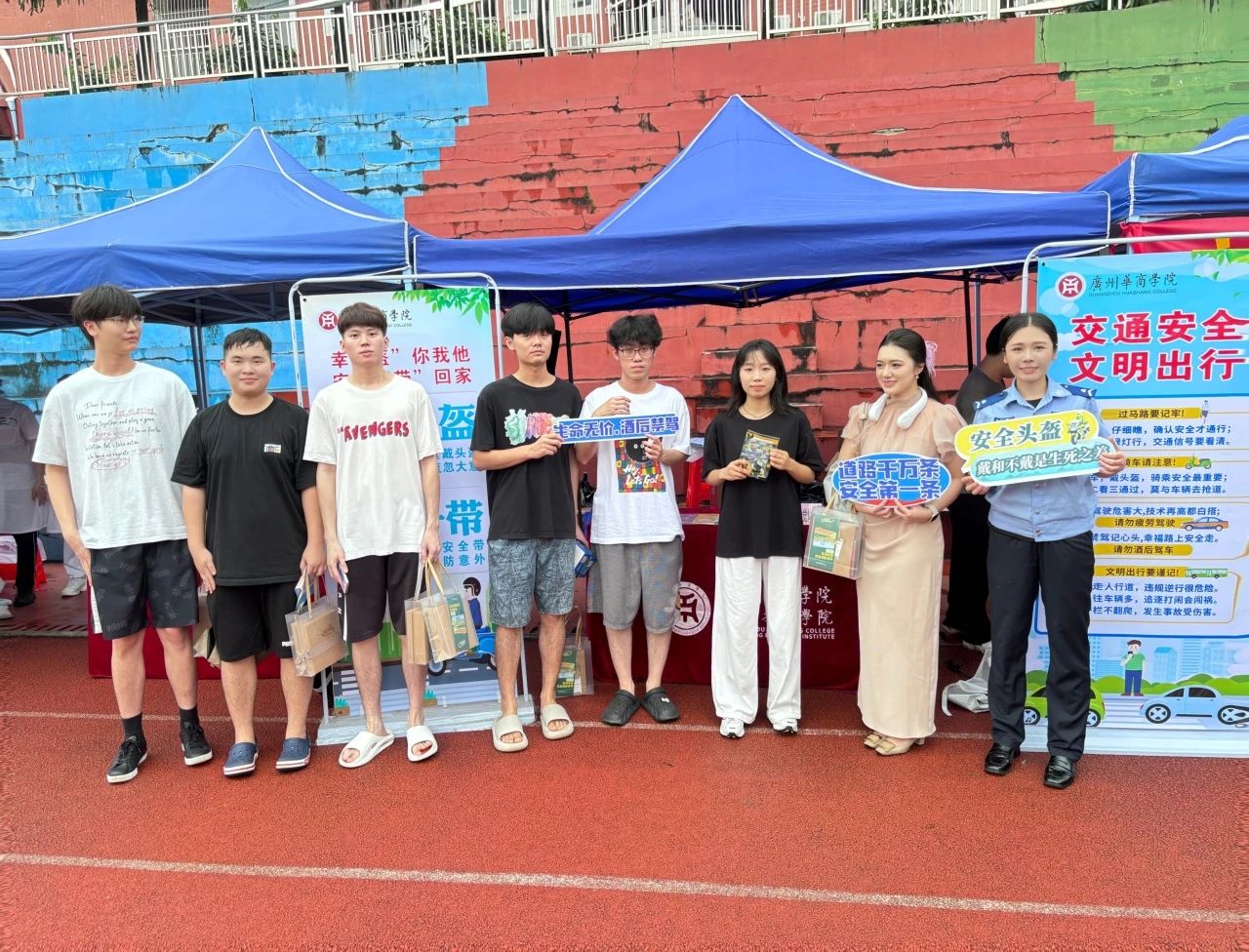 6月18日,后勤保卫处邀请了增城区消防大队荔城消防救援站、增城区公安分局交警大队、荔湖街道相关部门等政府单位在东区运动场开展2024年“安全生产月”系列宣传活动。活动现场,通过设立咨询点、酒驾VR体验、知识竞答、发放传单、设置宣传展板等多形式科普消防安全、交通安全、防范电信网络诈骗、预防毒品知识等内容,工作人员和广大师生“零距离”交流,让安全生产理念人人知晓、人人参与,进一步提高师生自我安全防范意识。