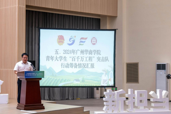 为认真贯彻落实习近平总书记五四重要寄语精神,贯彻落实党的二十大精神,落实省委、省政府关于实施“百千万工程”工作部署,引导和帮助华商青年成长为担当民族复兴大任的时代新人,6月30日,校团委在肇庆校区报告厅组织开展米兰在线注册2024年暑期“三下乡”社会实践活动暨广东青年大学生“百千万工程”突击队行动出征仪式。仪式由校团委副书记陈巧巧主持。