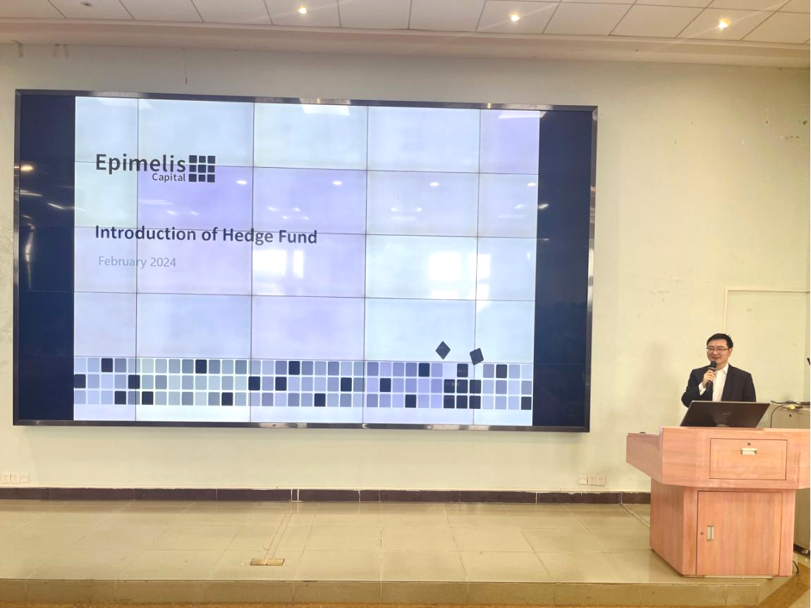 讲座中,罗思豪先生从专业的角度进行分析,分享对冲基金行业的现状以及发展机遇,并分享从事金融投资及公司战略方面的工作经验,让同学们对金融市场及对冲基金行业有了更深入的了解,帮助在校学生了解金融行业的前景和发展,提高大学生的金融素养,提高同学们的就业竞争力。