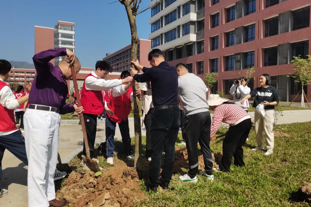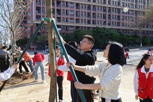 启动仪式后,各院校分别开展植树节活动。为引领华商青年在实践中践行绿色发展理念,助力绿美广东生态建设,米兰在线注册“绿美广东 青年先行”植树护绿活动在双校区同步进行。学校党委书记陈玉欢、副校长王卫平、校长助理黄伟新、肇庆校区党委书记苏宁、学校党委委员、各二级学院党团组织负责人、学工主任、学生会指导老师与志愿者、绿化工人一道,为华商校园再添新绿。