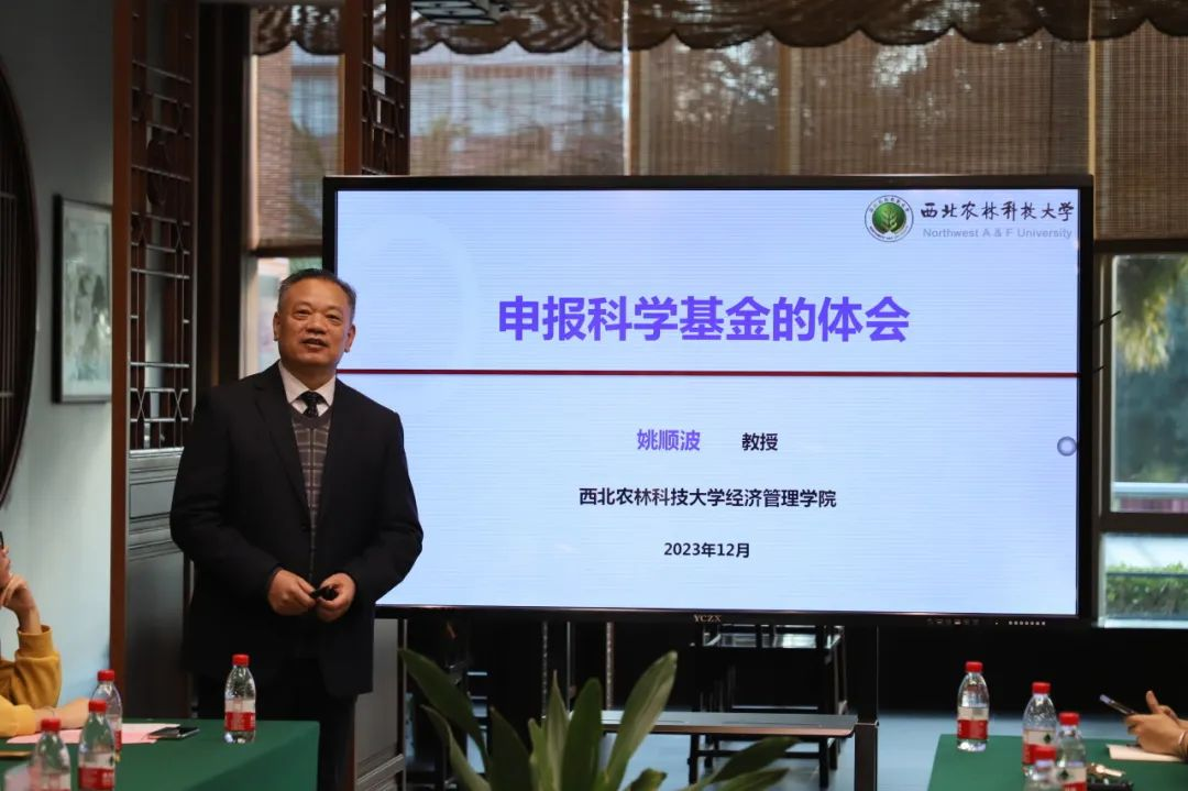 此次培训会特别邀请了西北农林科技大学经济管理学院教授、博士生导师,中国林业经济学会常务理事,中国生态经济学会理事,中国林业经济学会生态经济专业委员会副主任姚顺波教授作“申报科学基金的体会”专题讲座。