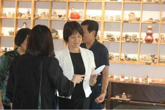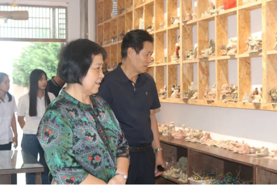 ▲校领导一行参观学生的手工艺作品