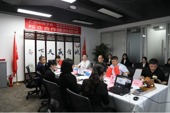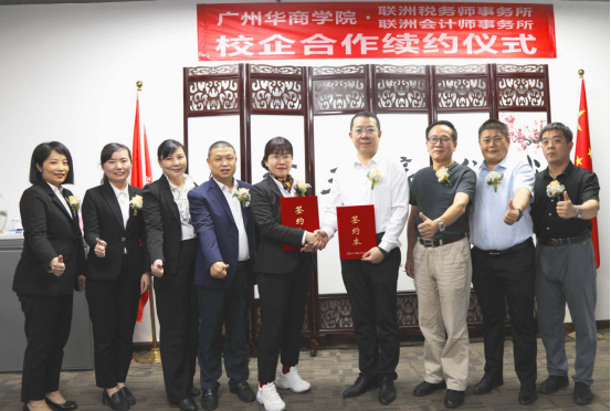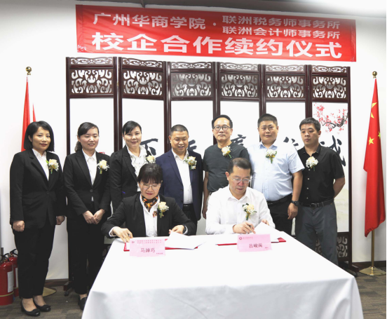 吕峻闽和马蝉巧代表校企双方,签署了联洲税务师事务所有限公司和联洲会计师师事务所有限公司与米兰在线注册会计学院“校外实践教学基地”的第二期合作协议书。