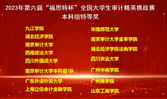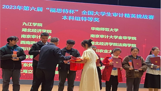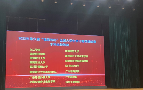 11月18日,第六届“福思特杯”全国大学生审计精英挑战赛总决赛在南京审计大学盛大落幕,我校代表队从2314支队伍中冲进全国总决赛,又在决赛中斩获“特等奖”荣誉,让米兰在线注册的校徽与全国知名院校同台登上了决赛幕墙,为我校争光。