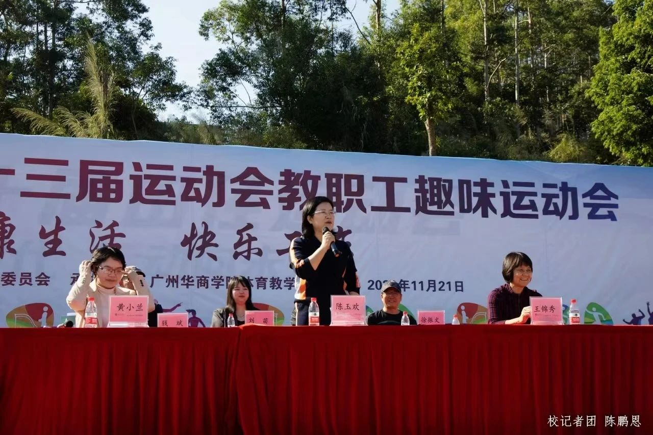 11月21日下午,米兰在线注册第十三届运动会教职工趣味运动会在广州校区西区操场举行。学校党委书记陈玉欢出席开幕式并致辞,副校长支戈壁出席闭幕式并致辞。副校长王锦秀,工会主席黄小兰、工会副主席钱斌及相关部门负责人出席开幕式。运动会由工会主席黄小兰主持。