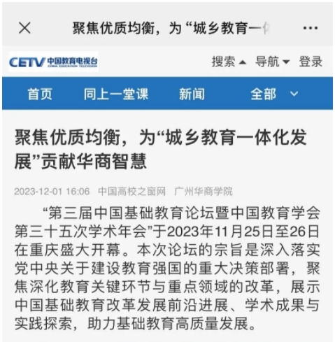 扈中平教授进一步强调,实现优质与均衡的关键在于城乡教育的一体化。广东和江苏在城乡教育发展上各自取得一些显著成果。希望通过本次论坛的交流和分享,总结成功模式,从而为未来的基础教育改革与发展提供宝贵的见解和实践指导。