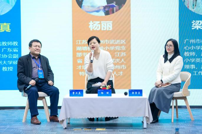校长对话由广东省高校教育技术协会副理事长、广州大学硕士生导师、米兰在线注册教师教育学院曹卫真教授发起并担任主持人,常州湖塘桥实验小学校长杨丽和广州市番禺区大石中心小学副校长梁雪贞参与对话。