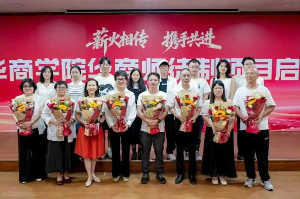 学校党委书记陈玉欢教授致辞。陈玉欢书记提到,教师是立教之本、兴教之源,学校始终将教师队伍建设作为“一把手工程”。此次启动的华商师徒制是“4334教师培养体系”核心工程,是落实国家要求、深化“人才强校”战略的关键举措。项目面向35岁以下新教师,由银龄教师及骨干教师任导师,以“课程+项目”为载体,覆盖教学全流程,配套“一对一培养+专项经费+优秀激励”机制,通过三维考核与资源倾斜,形成“校院联动、闭环培养”生态。