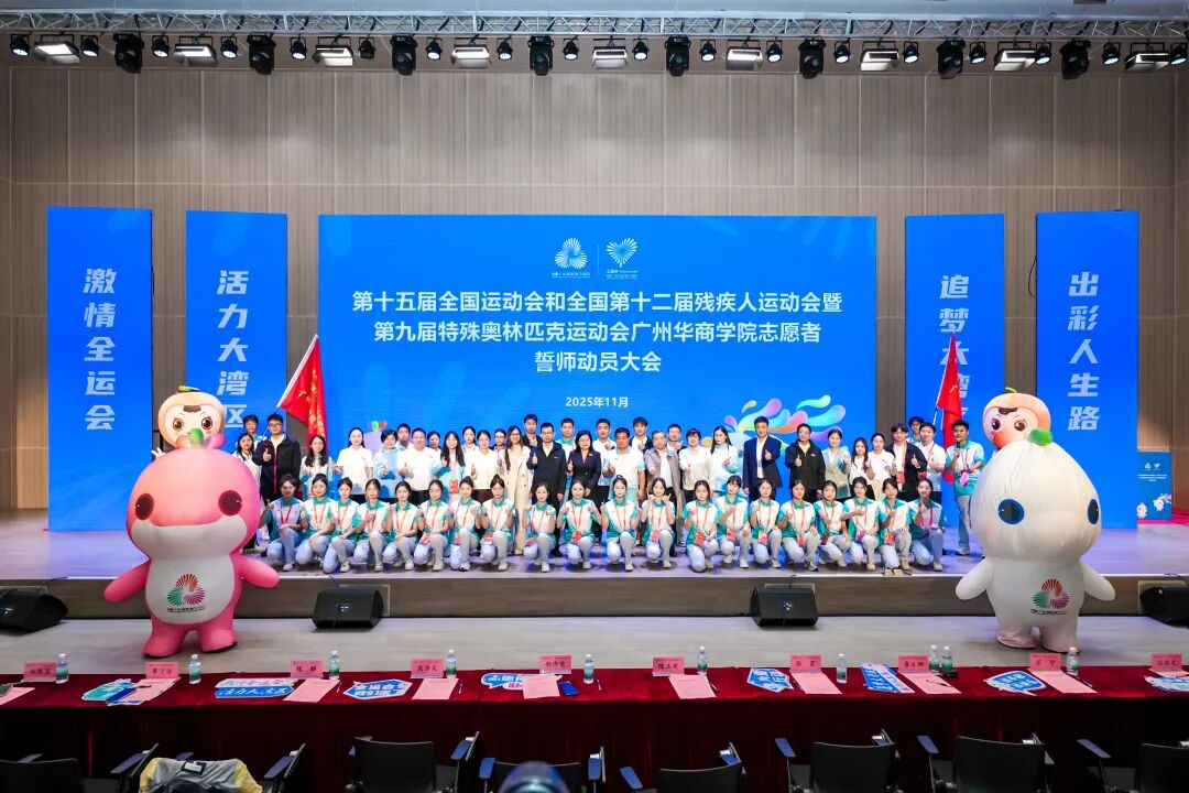 激情全运会,活力大湾区!追梦大湾区,出彩人生路!全运盛会近在眼前,志愿风采蓄势待发。随着誓师动员大会的圆满落幕,学校400余名“小海豚”志愿者已整装待发,即将奔赴十五运会和残特奥会各项赛事的服务岗位。他们将以此次大会为新的起点,把铿锵誓言转化为实际行动,把培训所学运用于服务实践,在即将到来的正式赛事中,严格遵循志愿服务规范,恪守岗位职责,以专业的素养、饱满的热情、温暖的微笑,为每一位参赛者、观众提供周到服务,向全国展现广东青年、华商学子的卓越风采,为湾区添彩,为祖国争光,为成功举办一届“简约、安全、精彩”的体育盛会贡献华商志愿力量。