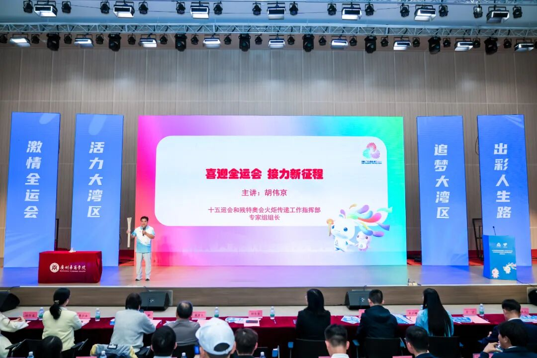 十五运会和残特奥会火炬传递工作指挥部专家组组长胡伟京应邀为全体志愿者作主题宣讲。宣讲中,胡伟京组长生动介绍了十五运会火炬的设计理念、文化内涵与象征意义,深度解读了全国运动会作为我国水平最高、规模最大的综合性体育盛会的悠久历史、时代价值与本届赛会的特色亮点。他结合自身丰富的经验,阐述了火炬传递所承载的体育精神与全民期盼,并勉励全体“小海豚”志愿者深刻理解肩负的使命,将火炬所代表的激情、梦想与希望,转化为服务赛会的强大动力,用实际行动当好东道主,为赛会成功举办贡献青春力量。