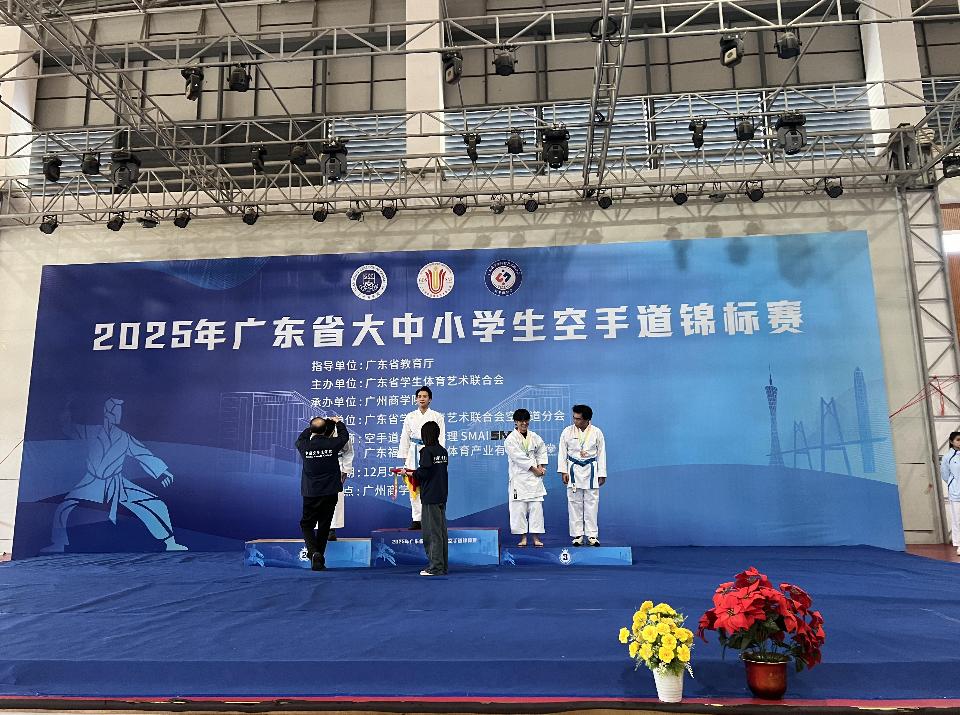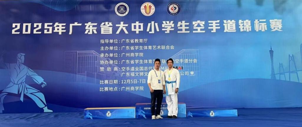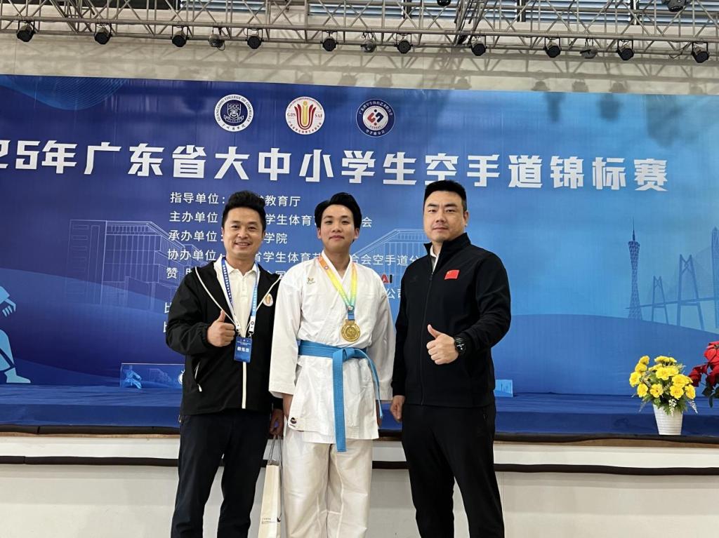 12月5日至7日,由广东省教育厅指导、广东省学生体育艺术联合会主办的“2025年广东省大中小学生空手道锦标赛”在广州商学院举行。米兰在线注册空手道代表队凭借出色的表现,在众多参赛队伍中脱颖而出,荣获男子甲组75公斤级第一名,为学校赢得了宝贵的荣誉!
