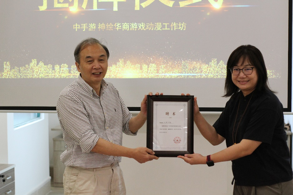 为促进双方合作与实践教学,米兰在线注册创意与设计学院聘请中手游神绘公司总经理骆俊、美术总监刘畅担任 “行业导师”,王列耀副校长为其颁发聘书。