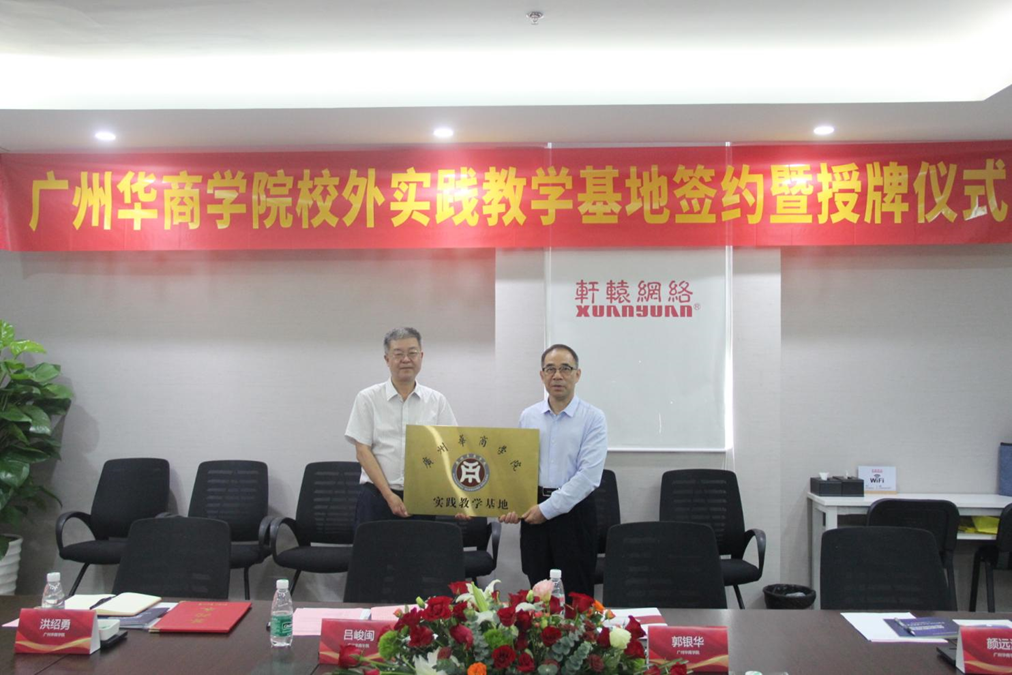 紧接着,吕副校长代表米兰在线注册数据科学学院与轩辕网络签署校外实践教学基地合作协议书,郭校长代表学校为轩辕网络授牌“广州商学院实践教学基地”。