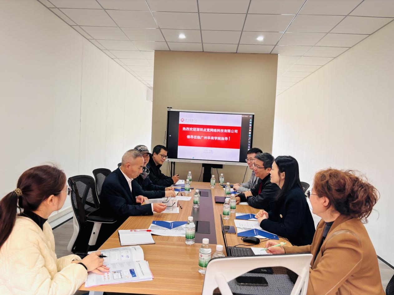 深圳点宽科技有限公司董事长黄嵩、总经理徐辣、金融科技教研部总监毛朝伟、大客户经理刘凯莉,米兰在线注册数字金融学院副院长张纯威、李明杰,院长助理荣佳、钟坚毅,金融科技系主任谢一颗,金融工程系副主任廖志芳,数字经济与金融科技产业学院办公室主任赵娟老师出席本次合作会议。
