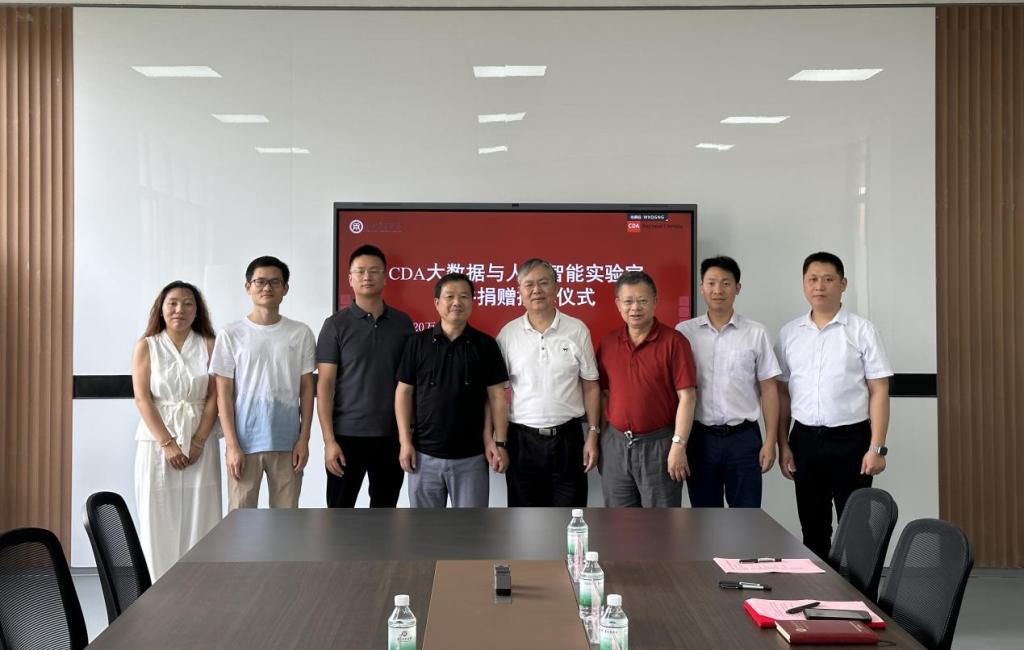 数字经贸学院院长李广明教授代表学校接受了广州就学在线科技有限公司捐赠的“CDA大数据和人工智能实验室”软件授牌。