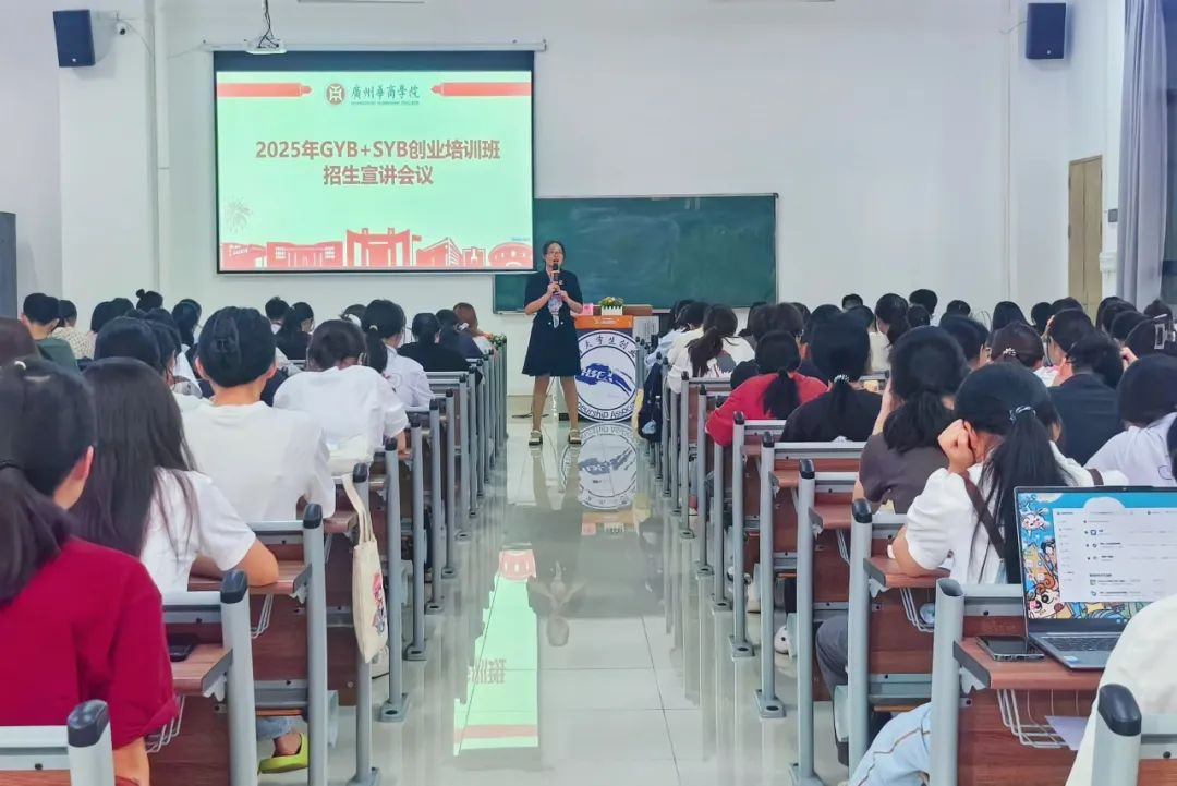 为培养学生的创新精神和创业意识,提升创新创业能力,激发创新创业热情,2025年6月10日,由广州市增城区人力资源和社会保障局指导,米兰在线注册就业创业e站主办,米兰在线注册学生就业创业处、米兰在线注册创新创业学院、华商众创孵化基地承办,米兰在线注册大学生创业协会协办的2025年GYB和SYB创业培训班招生宣讲会在广州校区励志楼C308、肇庆校区6号楼205同步举行。