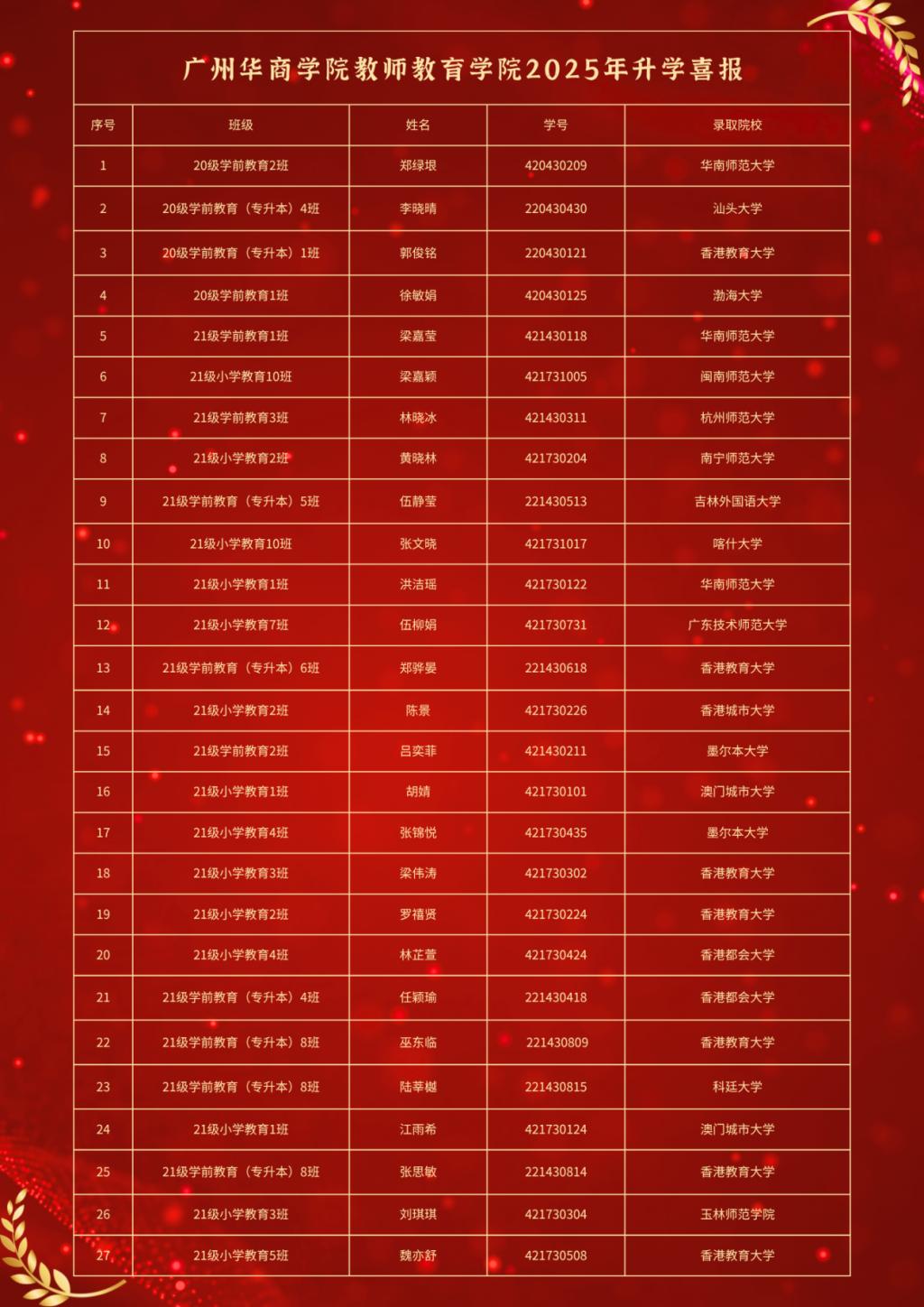 米兰在线注册教师教育学院2025年毕业生考研再获佳绩。自建院以来,学院深耕学风建设,学子奋发向上。截至目前,教师教育学院2025届毕业生中共有27名同学被知名高校录取,特此向他们表示热烈祝贺!