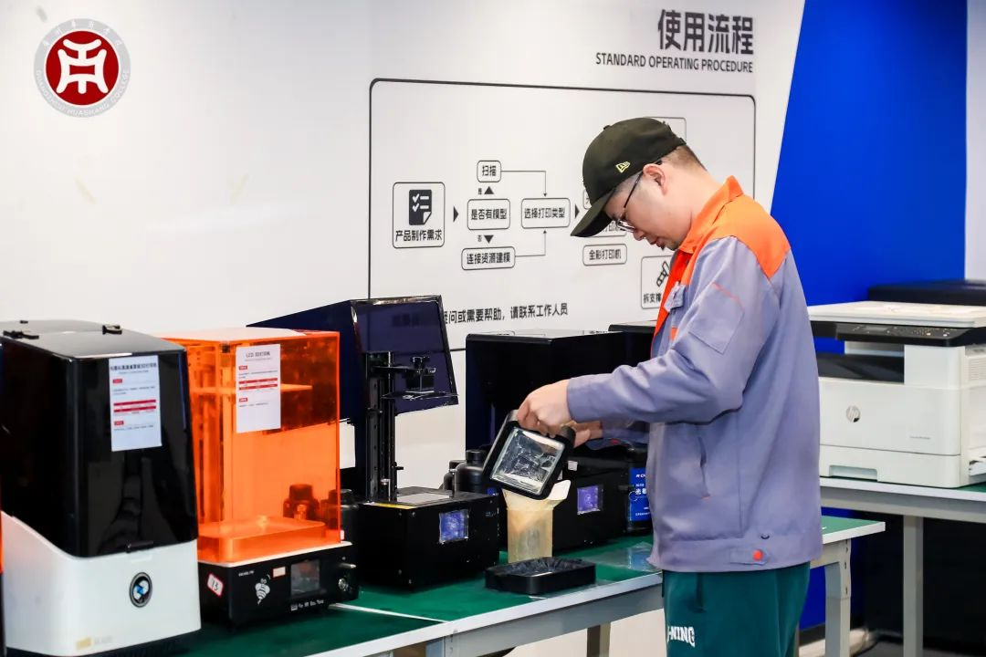 随后,师生走进基地数字生态成果转换实验室。实验室中3D打印、激光雕刻、柔性产线等设备让师生们感受了科技转化落地的全过程,深刻体会到“科技硬实力”在创业进程中的关键作用。