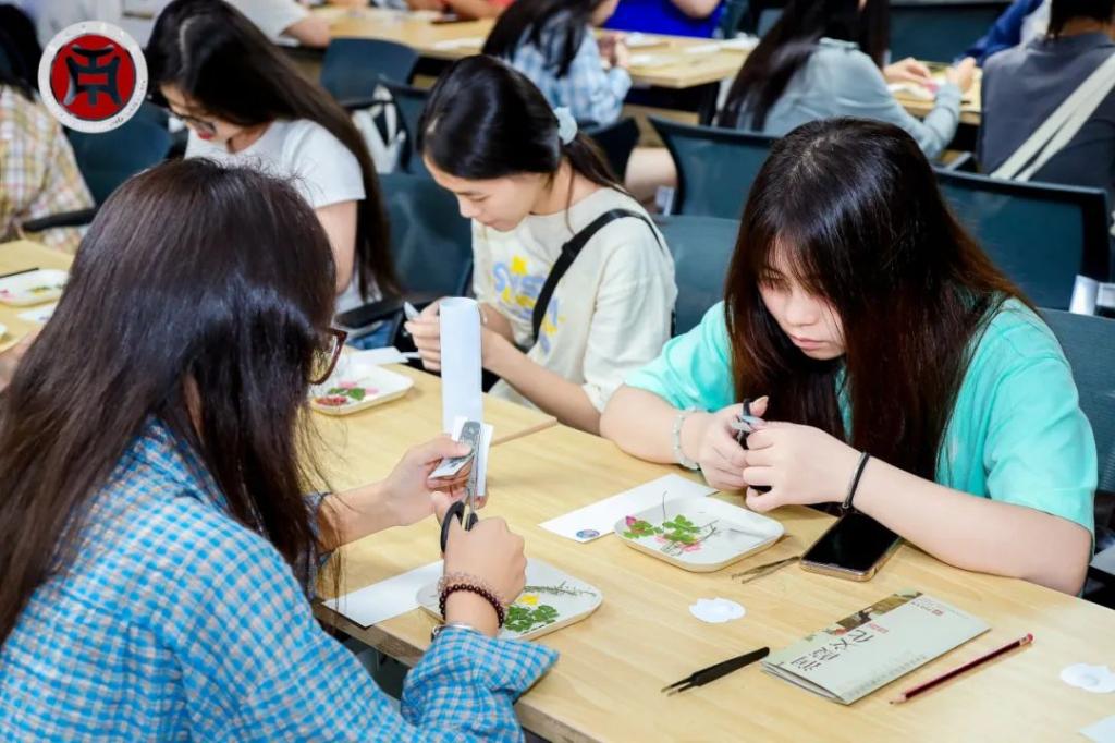 在非遗匠人导师指导下,师生们动手制作押花书签,近距离触摸非遗之美。传统技艺与现代设计的融合,让传统技艺真正走进现代生活场景,焕发时代生机,在创新实践中绵延不息。