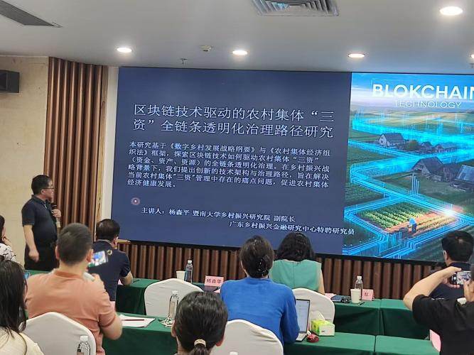 杨森平教授从数字化创新角度出发,深入剖析区块链技术在农村集体产品溯源中的应用。他指出,区块链技术能够精准记录农产品从生产、加工、物流到销售的全流程信息,确保各环节透明、可追溯,为农产品质量安全筑牢坚实防线。同时,基于《数字乡村发展战略纲要》与《农村集体经济组织法》,杨教授提出,区块链技术驱动的农村集体三资全链条透明化治理路径。他以云南昆明区块链+三资模式为例,详细阐述NFT土地经营权交易平台如何激活土地市场活力,以及智能合约如何保障链上收益分配公平公正,切实提升农民获得感与满意度,为农村集体经济发展注入新活力。