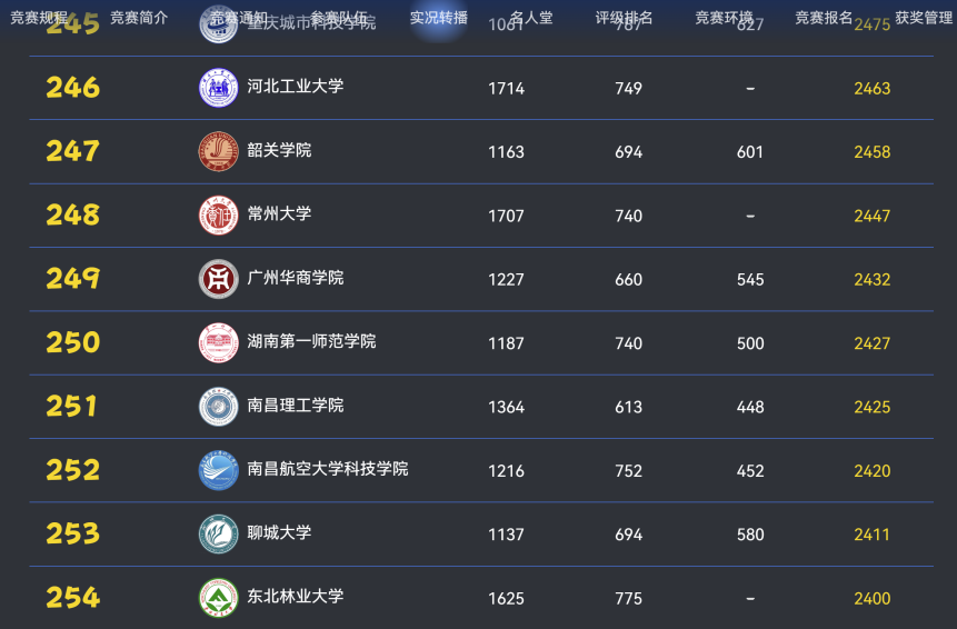 (米兰在线注册总成绩在华山论剑组全国高校排名第249位)